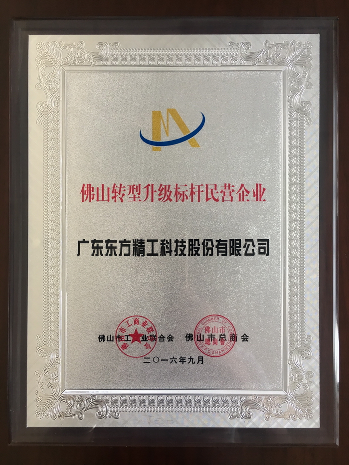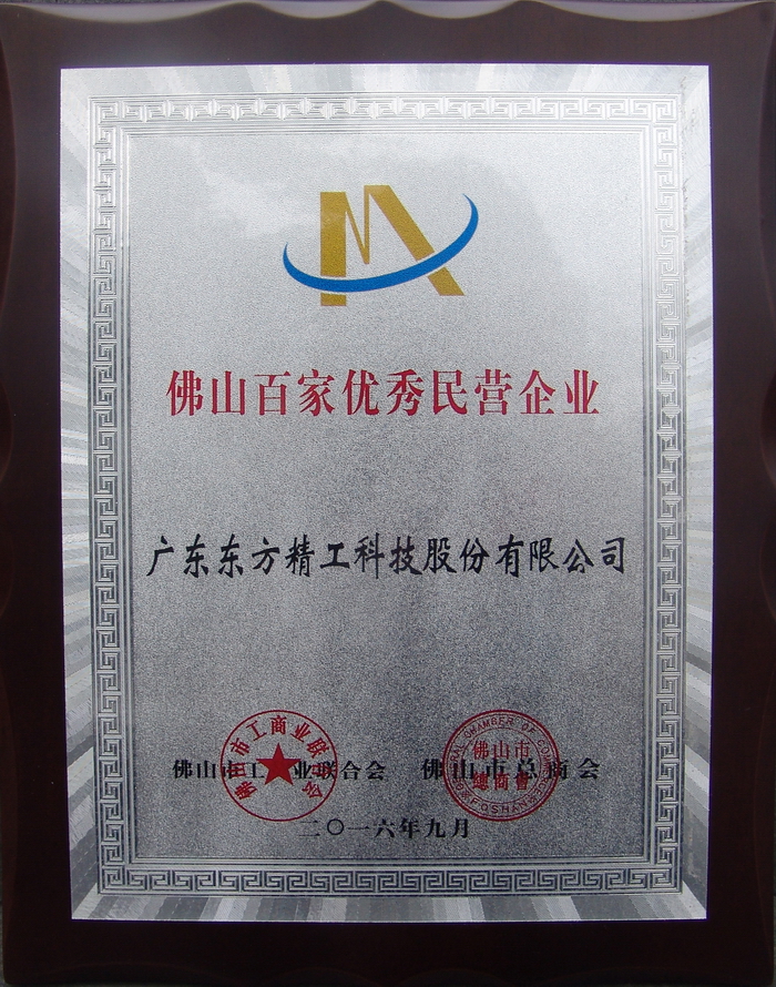 10月12日,佛山市工商聯(lián)對外正式發(fā)布2016年佛山民營經(jīng)濟(jì)發(fā)展成績單,同時發(fā)布100家佛山市優(yōu)秀民營企業(yè)名單和20家佛山市轉(zhuǎn)型升級標(biāo)桿民營企業(yè)名單,并對榮登榜單的企業(yè)進(jìn)行表彰。東方精工憑借多年來的穩(wěn)健發(fā)展及近年來在轉(zhuǎn)型升級方面的突出表現(xiàn),同時榮登“佛山市轉(zhuǎn)型升級標(biāo)桿民營企業(yè)”和“佛山市優(yōu)秀民營企業(yè)”兩個榜單,成為在經(jīng)濟(jì)新常態(tài)下在智能制造、提質(zhì)增效、互聯(lián)網(wǎng)+、科技創(chuàng)新等方面主動轉(zhuǎn)型的優(yōu)秀民營企業(yè)。