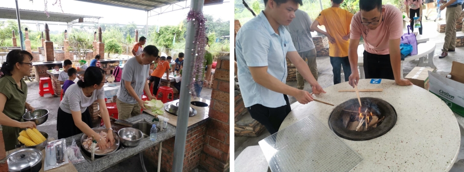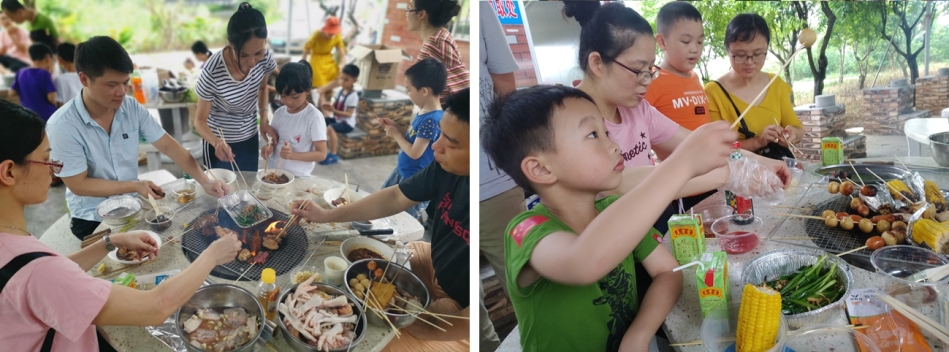 首先,是燒烤活動(dòng)華麗的開(kāi)場(chǎng)!人力資源部的同事們?cè)缭鐬榇蠹覝?zhǔn)備好了豐盛的燒烤食品、水果、飲料等。拿到食物的組員就開(kāi)始了分工合作,洗菜、穿串、生火、烤制。大家忙得不亦樂(lè)乎卻有條不紊,各自在小組的燒烤爐前忙碌著。