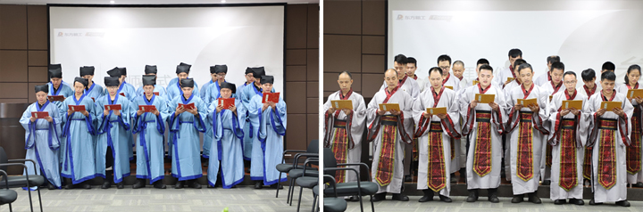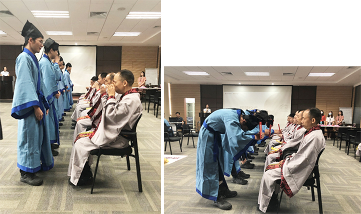 2020年儲備生(學(xué)徒)師徒結(jié)對拜師會活動在行政樓三樓培訓(xùn)室舉行,師傅和徒弟們都穿上了拜師儀式服裝,師傅們英姿颯爽,徒弟們神采奕奕,現(xiàn)場氣氛莊嚴(yán)端正。