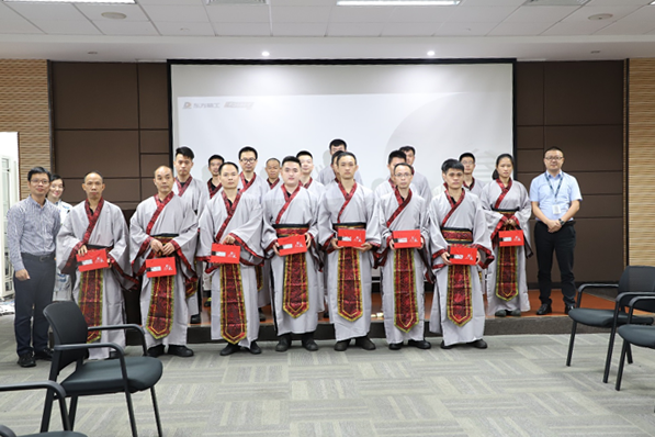 最后,集團(tuán)副總裁劉詹發(fā)表了熱情洋溢的致詞,講述了儒家思想中的“天地君親師”理念,形容師徒是一個互相影響、互相促進(jìn)的關(guān)系,期望大家互相學(xué)習(xí)、共同進(jìn)步。