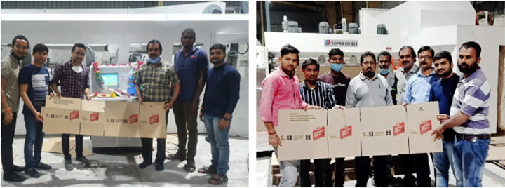 疫情之下,東方精工印刷機(jī)團(tuán)隊克服艱難,在印度按時為客戶安裝調(diào)試完聯(lián)線粘箱機(jī)并交付使用,受到客戶高度贊揚(yáng)。