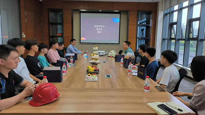 接著員工代表肖工也作為儲備生們的前輩分享了他的經(jīng)驗。肖工在2018年以學徒身份入職東方精工,經(jīng)過三年多的學習工作,現(xiàn)在已經(jīng)是車間里一位出色的技術(shù)人員了。肖工分享到,保持謙遜好學主動求教正是他快速進步的階梯,努力程度決定了成長的速度。