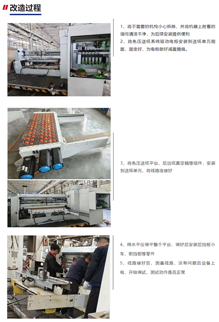 新疆客戶工廠擁有3臺東方精工印刷機TOPRA AD 1224上印高速印刷機,機器設備的高品質(zhì)得到了客戶的充分認可。本次技改項目便是為其中2臺設備進行升級改造,將太陽輪箱送紙系統(tǒng)改為無損傷送紙系統(tǒng)。
