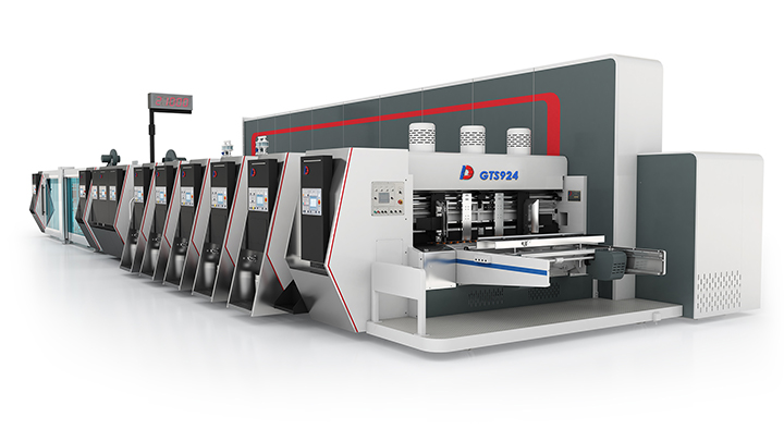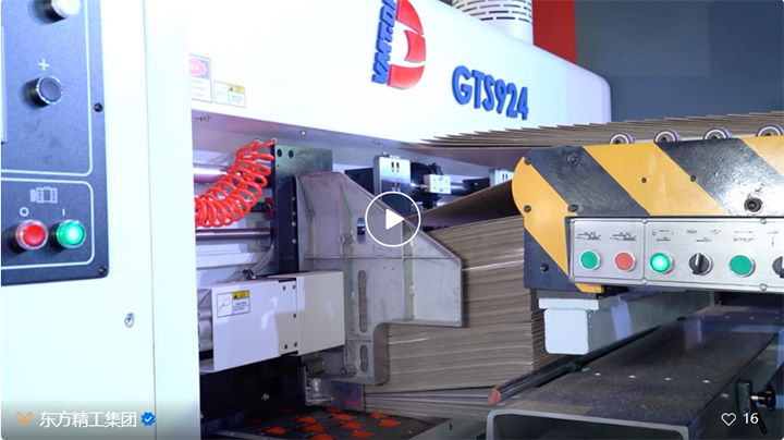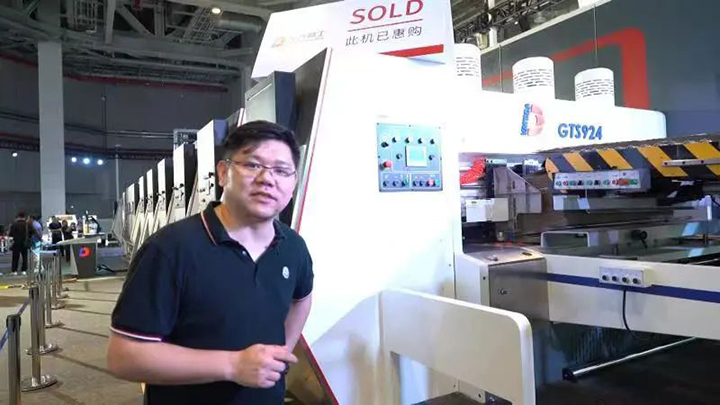 Corrface全瓦通羅旭峰:我們之前在永盛也拍過(guò)東方的GTS1228,這次展會(huì)發(fā)布的是GTS924,它是一條主要針對(duì)一些小型電商箱的聯(lián)動(dòng)線。它的送紙部可以說(shuō)是行業(yè)標(biāo)配的免壓送紙。這臺(tái)設(shè)備最大的亮點(diǎn),我們之前也有介紹過(guò),就是它整個(gè)傳輸不用真空箱,而是用大皮帶的方式來(lái)傳輸。大皮帶的好處在于:第一是省電,第二這對(duì)于如三層板、翹曲的紙板來(lái)說(shuō),它整個(gè)的適用性會(huì)更強(qiáng)。而且對(duì)于很多小型的紙板會(huì)更加的方便。