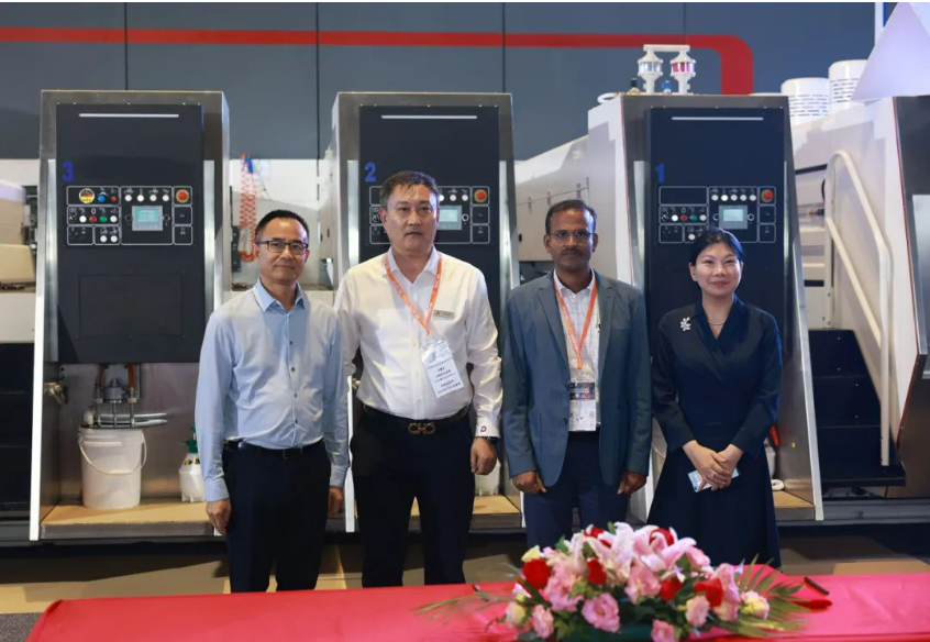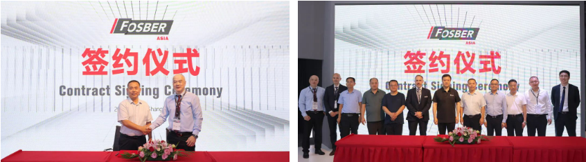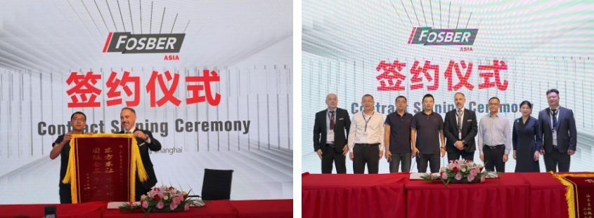 11時18分,佛斯伯亞洲與汕頭東社紙品有限公司舉行了簽約儀式。東社紙品有限公司總經(jīng)理趙澤強先生、總經(jīng)理周文喜先生和佛斯伯集團CEO Marco Bertola先生共同簽署了合作協(xié)議。汕頭東社紙品有限公司是華南地區(qū)首屈一指的包裝行業(yè)龍頭企業(yè),此次增購一條2.8米佛斯伯全自動高速瓦楞紙板生產(chǎn)線。展會現(xiàn)場,汕頭東社紙品還贈送佛斯伯亞洲“東方東社,在續(xù)情緣;國際展會,收獲滿滿”錦旗,祝賀與佛斯伯亞洲的合作,預(yù)祝展會取得圓滿成功。