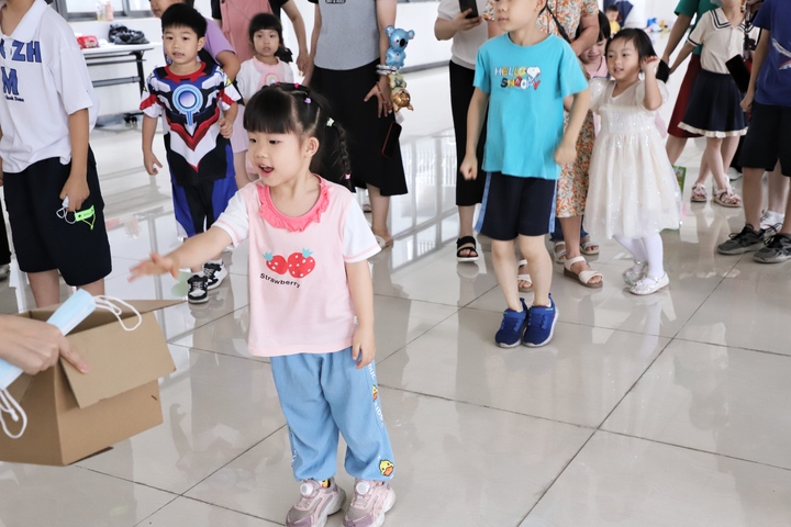 隨后,活動進入了緊張刺激的組隊游戲環(huán)節(jié),游戲一共設有四個關卡,分別是“蒙眼打西瓜”、“互動投球”、“親子運球”和“你比劃我來猜”。每一個關卡都充滿了童趣和合作性,員工和孩子們齊心協(xié)力,共同完成一個個挑戰(zhàn),每組家庭都展現(xiàn)出了默契和團結。